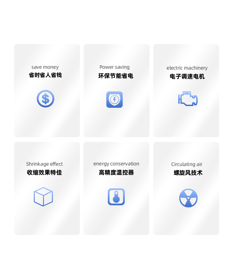 POF收缩机,属于热收缩包装机的一种,以POF收缩膜为包装材料,根据POF特性而设计研发的双风机机型,收缩PVC膜也很好,通过螺旋风技术将远红外线加热管产生的热量用强劲的风力使其均匀散布于整个发热仓内并传送到收缩膜表面,以使收缩膜达到所需的温度而产生热收缩反应迅速定型,外套玻璃纤维套管的辊筒也会随着输送链条的运行而匀速、不间断的滚动,保证商品底部不会出现局部温度过高及粘膜,解决底部难收缩的困扰,从而使商品各面收缩良好。