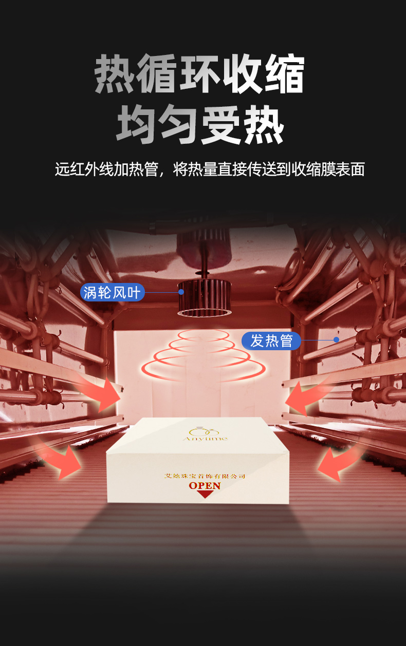 3、采用远红外线加热管,将热量直接传送到收缩膜表面,收缩效率特佳