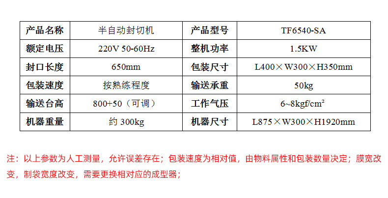 TF6540-SA半自动套膜封切机