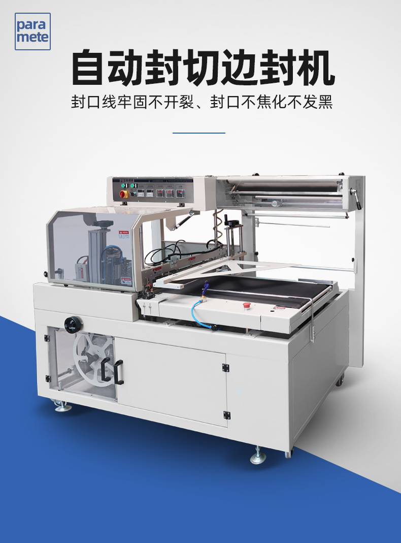 全自动封切机(边封),以POF热收缩膜为包装材料,对商品进行自动套膜封切并输送到收缩机进行热收缩包装以使商品收缩良好。封切机根据自动化程度分为全自动和半自动,需后接POF收缩包装机组成全自动或半自动生产线,代替人工套膜提高生产效率,尤其是全自动封切机与自动生产线配合使用更能体现其优越性。