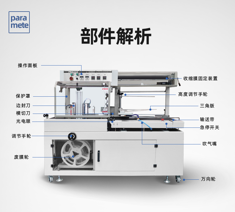 BF系列封切机属于边封机,属于封切机的一种,由电器、机械、机身三大部分组成,和L型封切机区相比,主要特点就是可以根据商品高度通过高度调节手柄单独调节纵封和横封的封切线使之位于商品的中线位置,从而使产品收缩良好。
