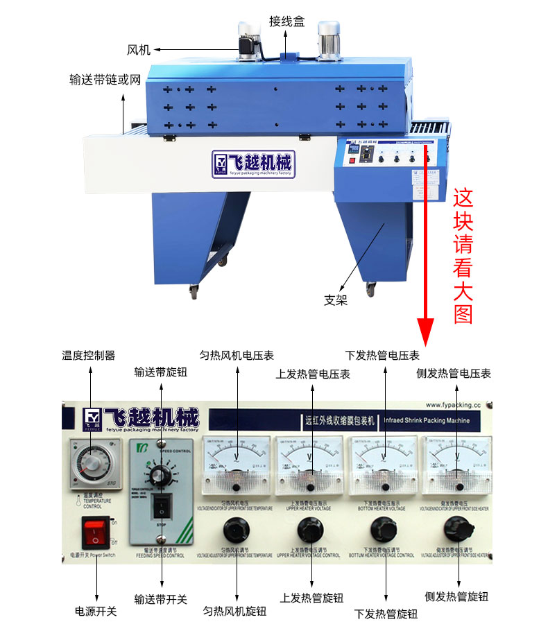3、采用远红外线加热管,将热量直接传送到收缩膜表面,收缩效率特佳