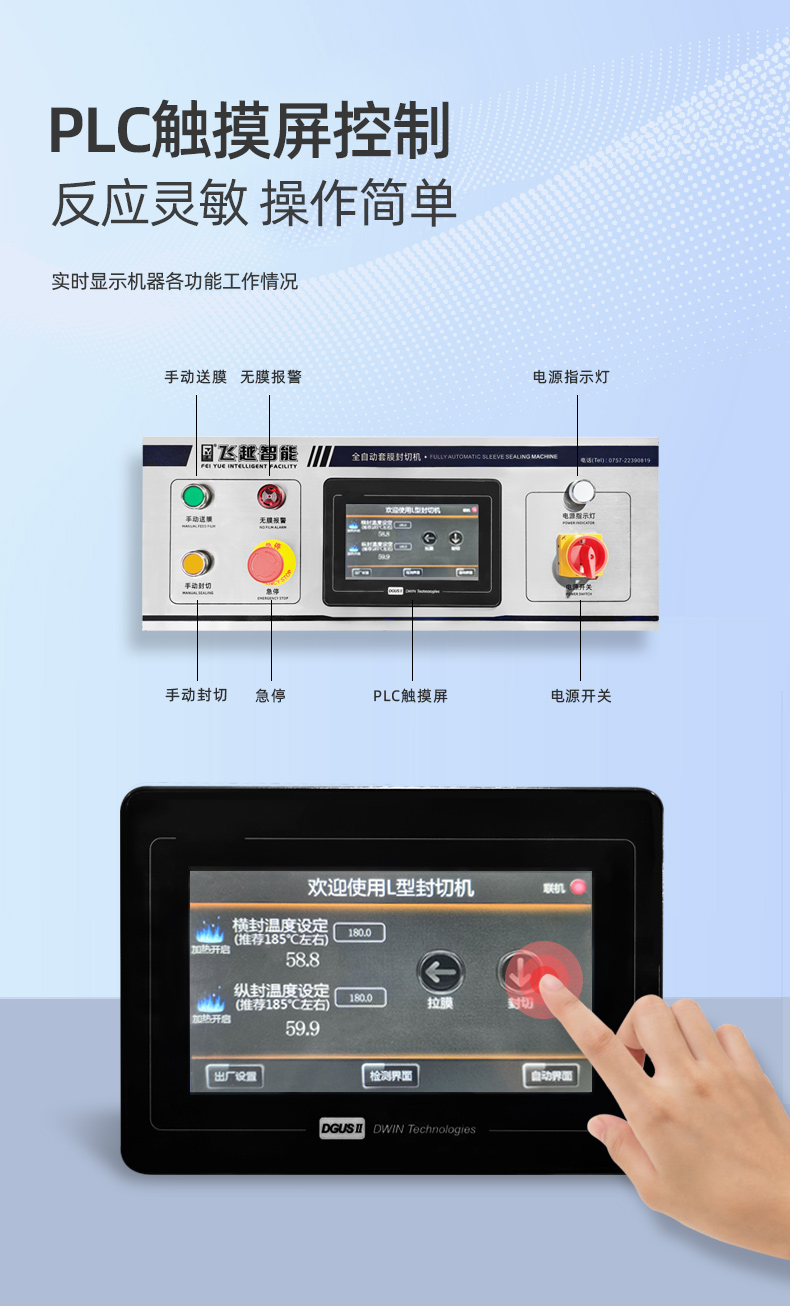 本公司工程师凭着多年的理论和实践经验,研究了国内外多种先进机型,汲取了客户宝贵的建议,本着令中国制造业更好尽一份绵薄之力的宗旨,于2022年全新设计制造,开发出新型自动封切机,比上一代更智能美观、更好用耐用,最亮眼的是低价位使用PLC触摸屏控制,加料不加价,质量还更佳,让曾经高高在上的PLC触摸屏控制从此开始走进低价位机型,为企业节省成本、节省人工、节省时间(省钱省人省时)。