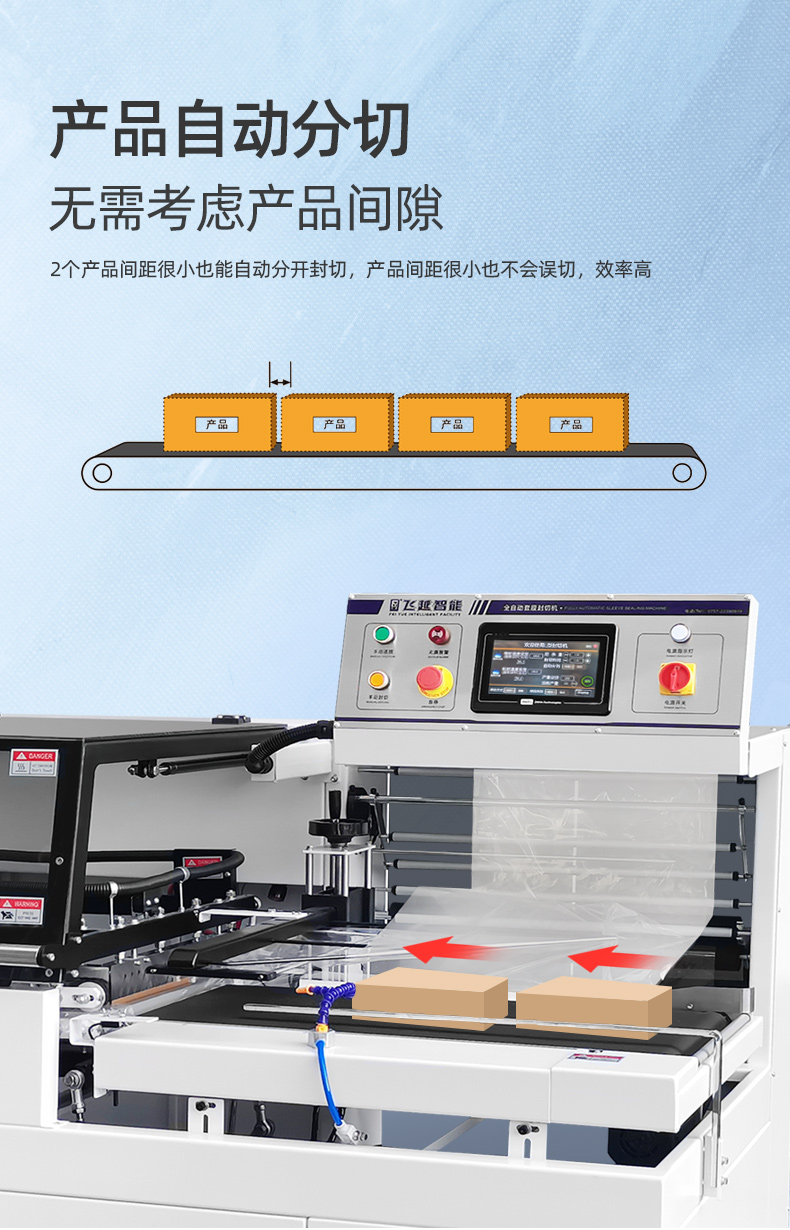 3、产品自动分切,2个产品间距很小也能自动分开封切,防止2个产品太近造成误切,效率高