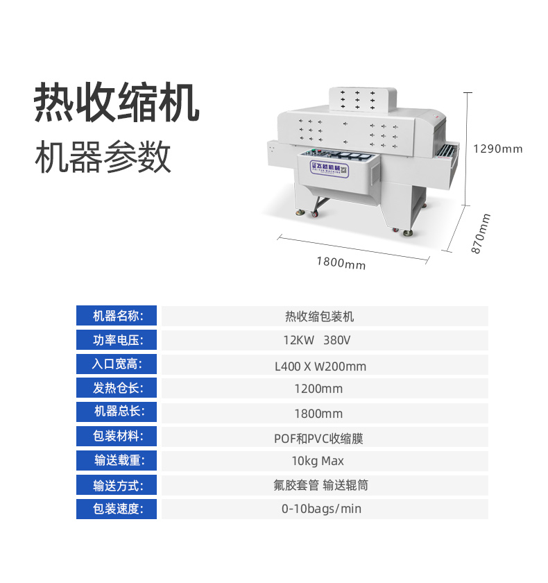 热收缩包装,是目前市场上常用的包装方法之一,它采用热收缩薄膜包在商品外面并通过热收缩机加热发生热收缩反应从而裹紧商品。包装后的商品,能清晰显示商品的外观,增加美观及价值观,提高商品的展销性,可以防潮防尘,具有一定的缓冲力,使商品减少来自外部的冲击力,还可减少商品被拆、被窃的可能性,当包装易碎品时,能够防止器皿破碎时飞散。