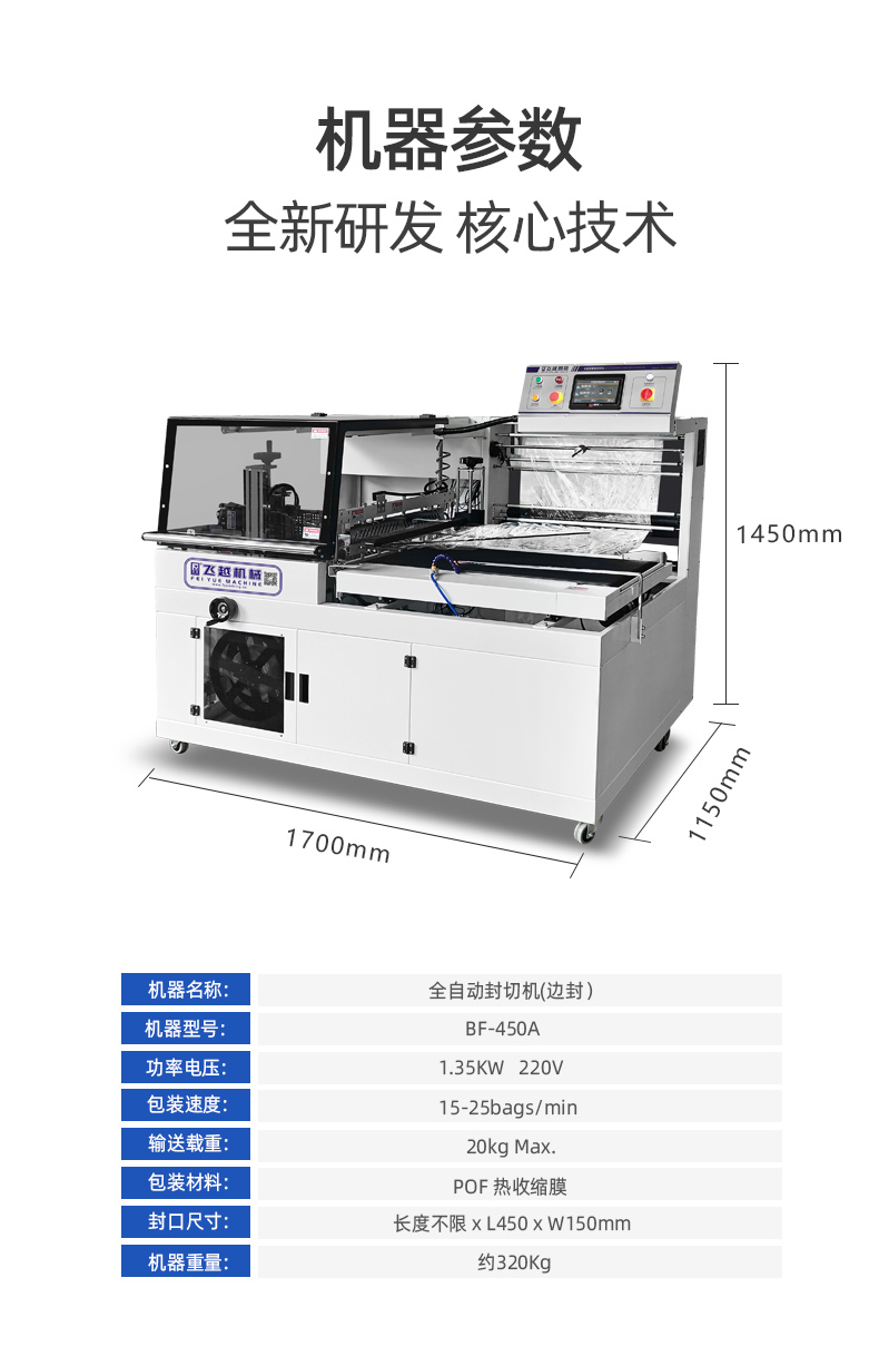 型号:粤奇BF-450A全自动封切机(触摸屏边封)