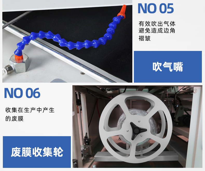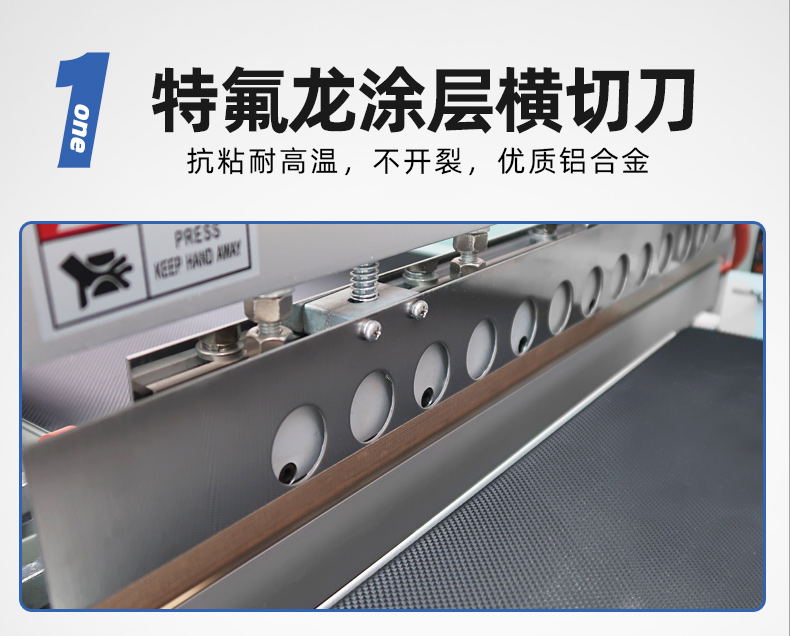 2、特氟龙涂层铝合金封切刀,抗粘刀耐高温、封口线牢固不开裂、封切不焦化冒烟,封切刀护板采用优质合金钢不易变形
