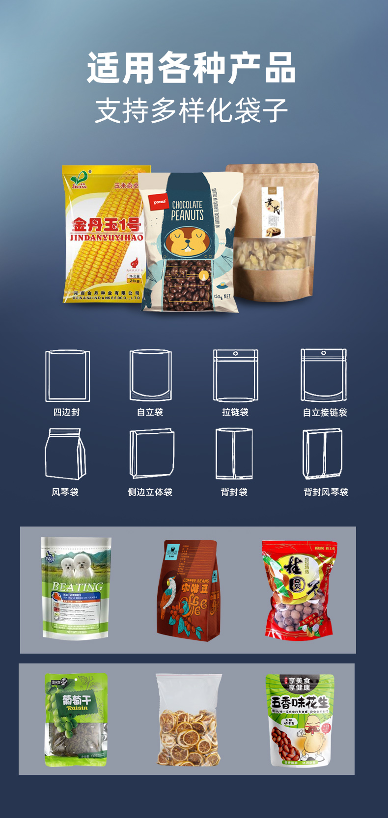 包装物料:固体物料包装袋种类:各种平口包装袋、透明PE袋等